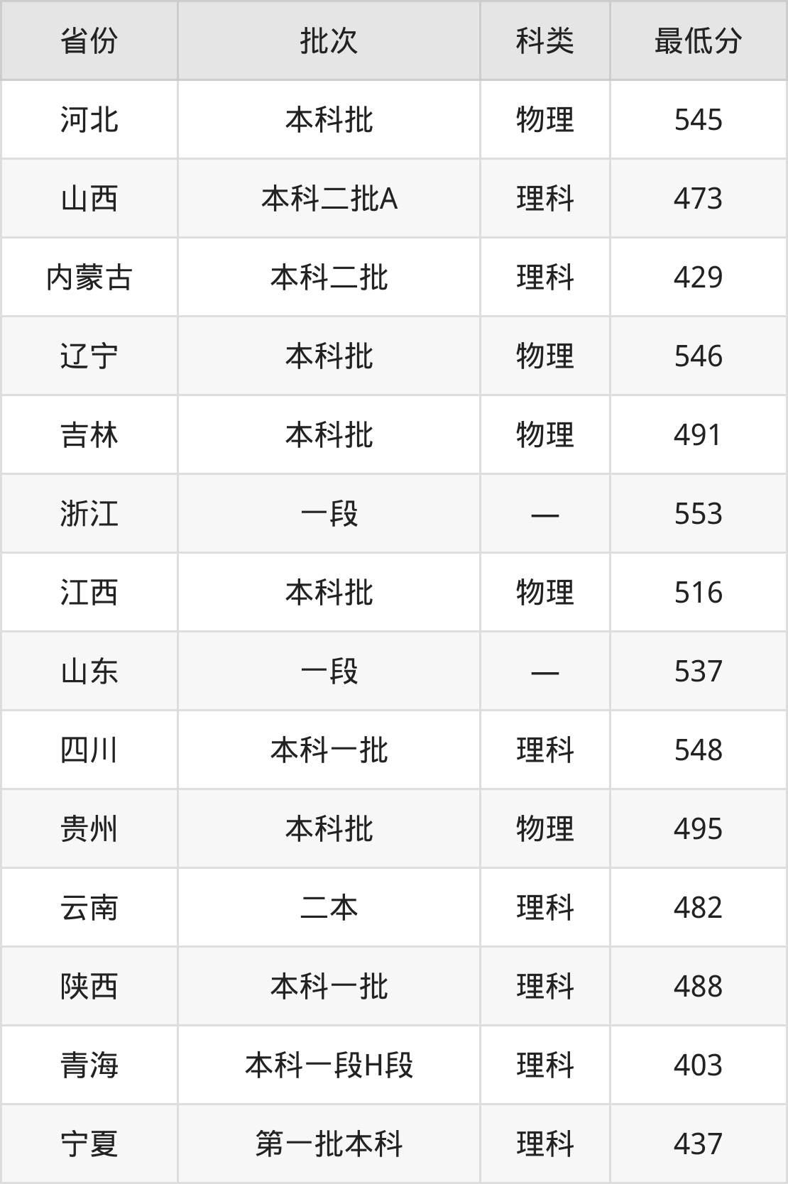 内蒙古:理科最低429分