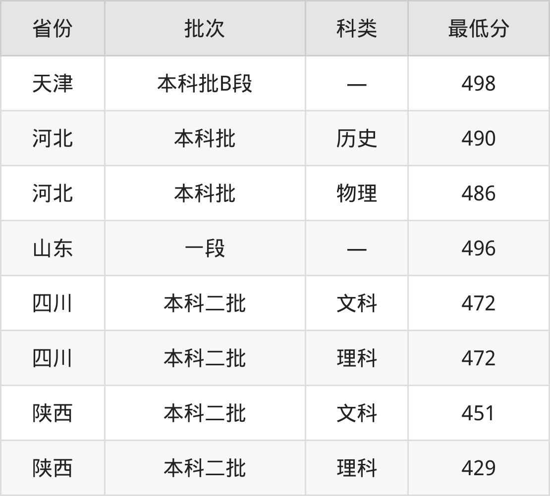 山东财经大学东方学院金融学专业在全国各省最低录取分数线为429分(陕西理科),除此之外,在其余地区的最低分为天津498分、河北物理类486分、山东496分、四川文科472分等,以上数据均为2024年数据,供2025年高考生参考。