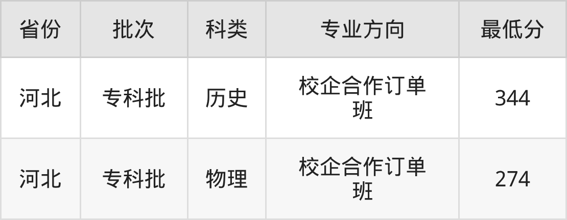 曹妃甸职业技术学院医学美容技术专业录取分数线从274分到344分不等,最低分数线如下: