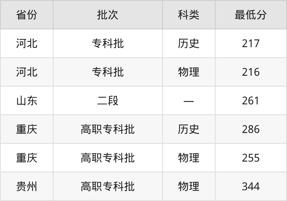重庆艺术工程职业学院建筑室内设计专业在全国各省最低录取分数线为216分(河北物理类),除此之外,在其余地区的最低分为贵州物理类344分、山东261分、重庆物理类255分,以上数据均为2025年数据,供2026年高考生参考。