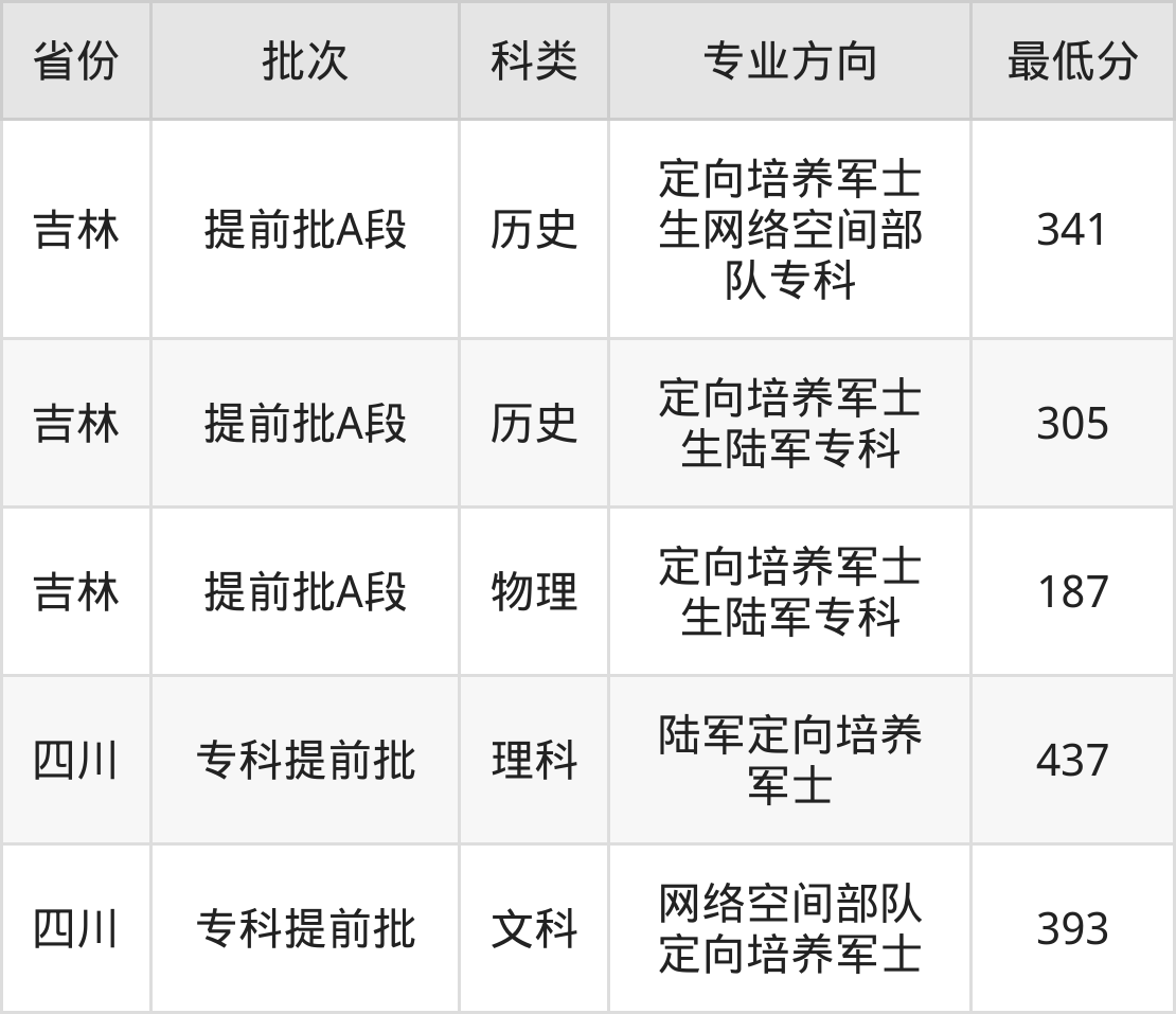 | 历史类 | 第001组 | 定向培养军士 生网络空间部 队专科 | 5 |