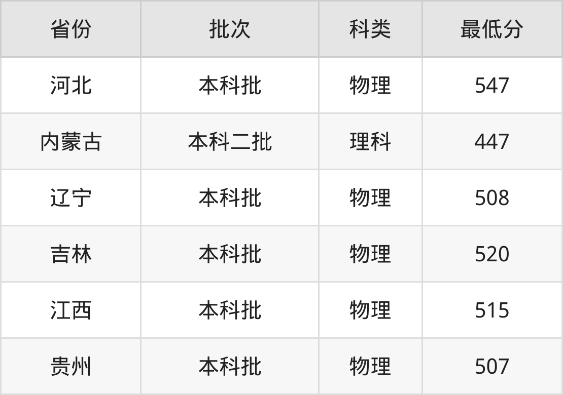 内蒙古:理科最低447分