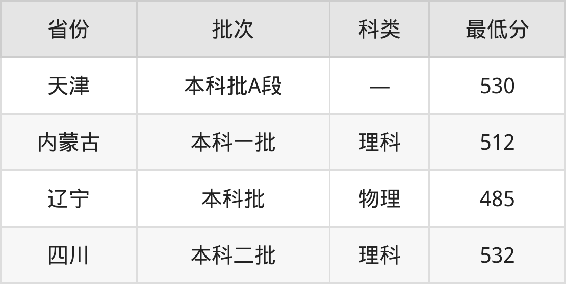 内蒙古工业大学机械电子工程专业录取分数线从485分到532分不等,最低分数线如下: