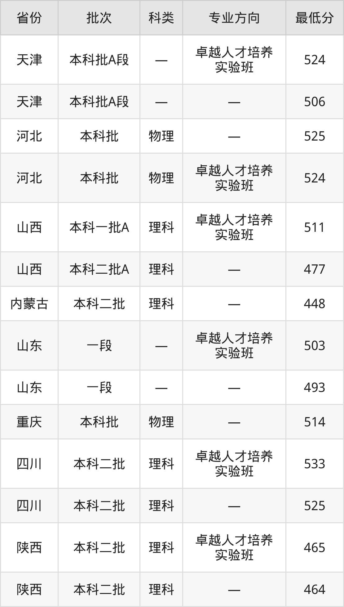 山西农业大学食品质量与安全专业在全国各省最低录取分数线为448分(内蒙古理科),除此之外,在其余地区的最低分为重庆物理类514分、四川理科525分、陕西理科464分、天津506分等,以上数据均为2024年数据,供2025年高考生参考。