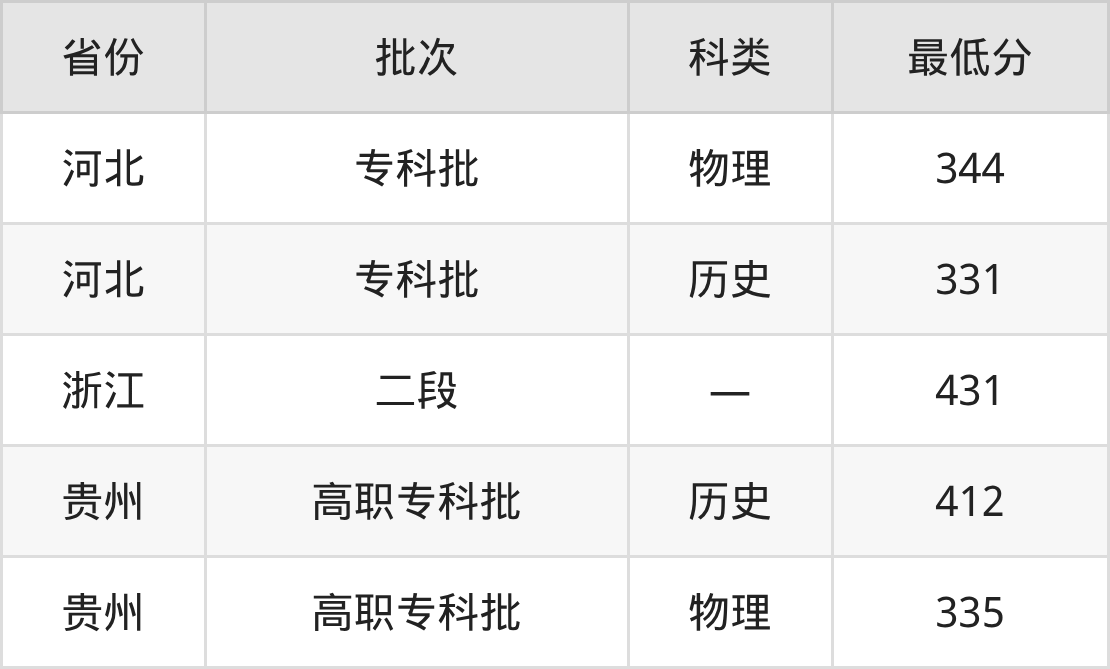 泉州海洋职业学院机电一体化技术专业在全国各省最低录取分数线为331分(河北历史类),除此之外,在其余地区的最低分为浙江431分、贵州物理类335分,以上数据均为2025年数据,供2026年高考生参考。