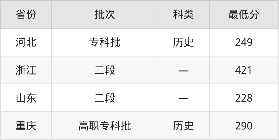 山东文化产业职业学院文物修复与保护专业在全国各省最低录取分数线为228分(山东),除此之外,在其余地区的最低分为河北历史类249分、浙江421分、重庆历史类290分,以上数据均为2025年数据,供2026年高考生参考。