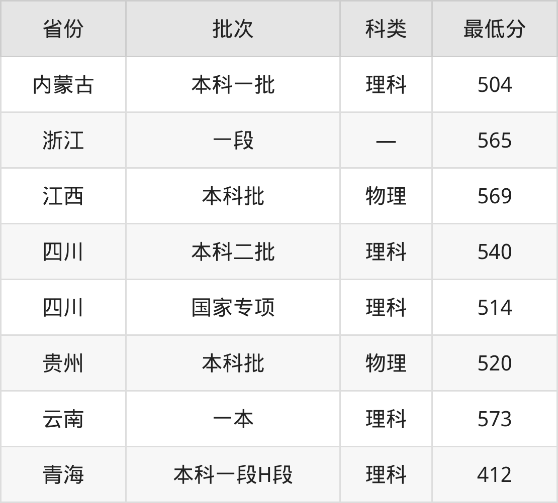 温州医科大学生物技术专业在全国各省最低录取分数线为412分(青海理科),除此之外,在其余地区的最低分为内蒙古理科504分、浙江565分、江西物理类569分、四川理科514分等,以上数据均为2024年数据,供2025年高考生参考。
