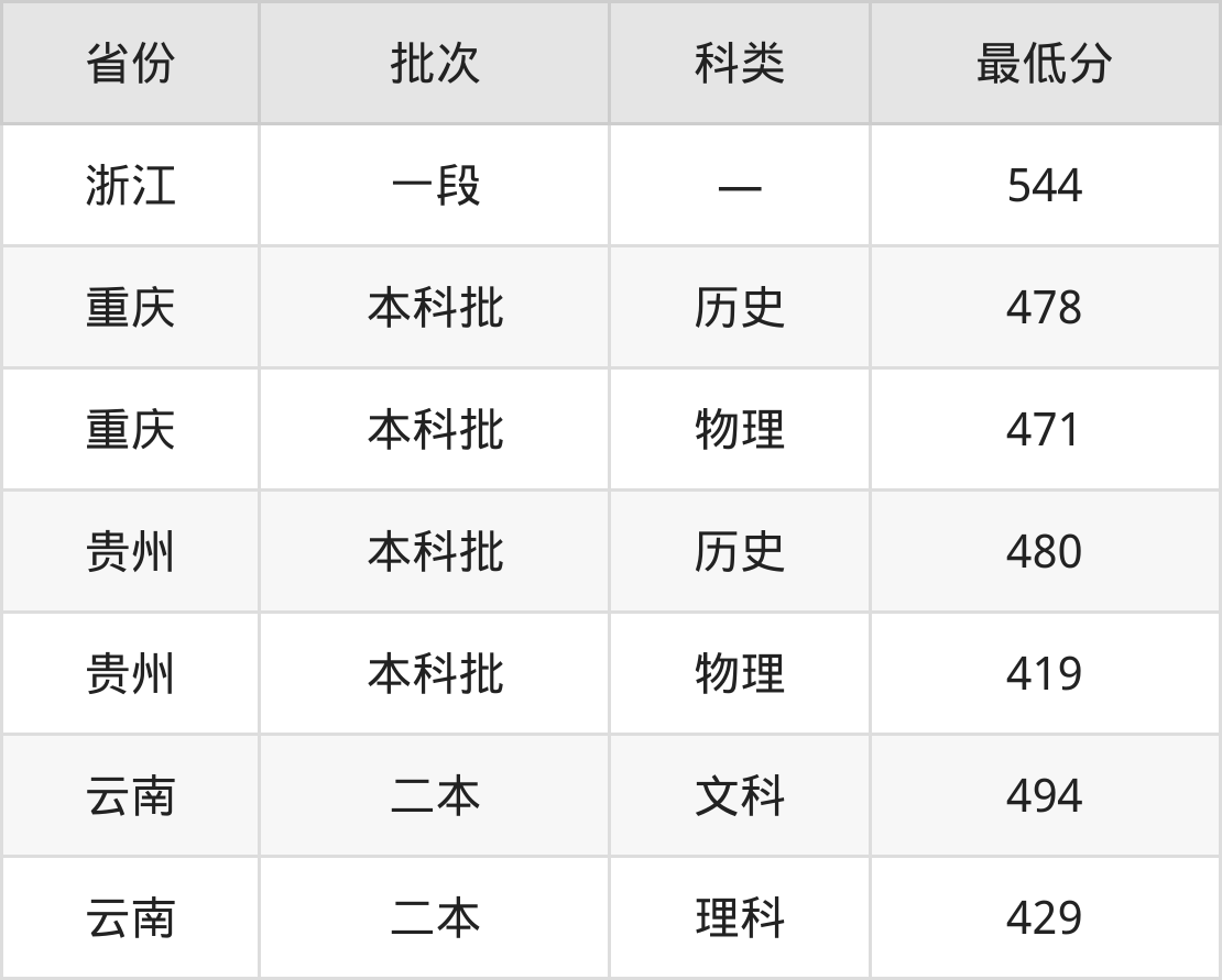 云南经济管理学院汉语言文学专业在全国各省最低录取分数线为419分(贵州物理类),除此之外,在其余地区的最低分为重庆物理类471分、云南理科429分、浙江544分,以上数据均为2024年数据,供2025年高考生参考。
