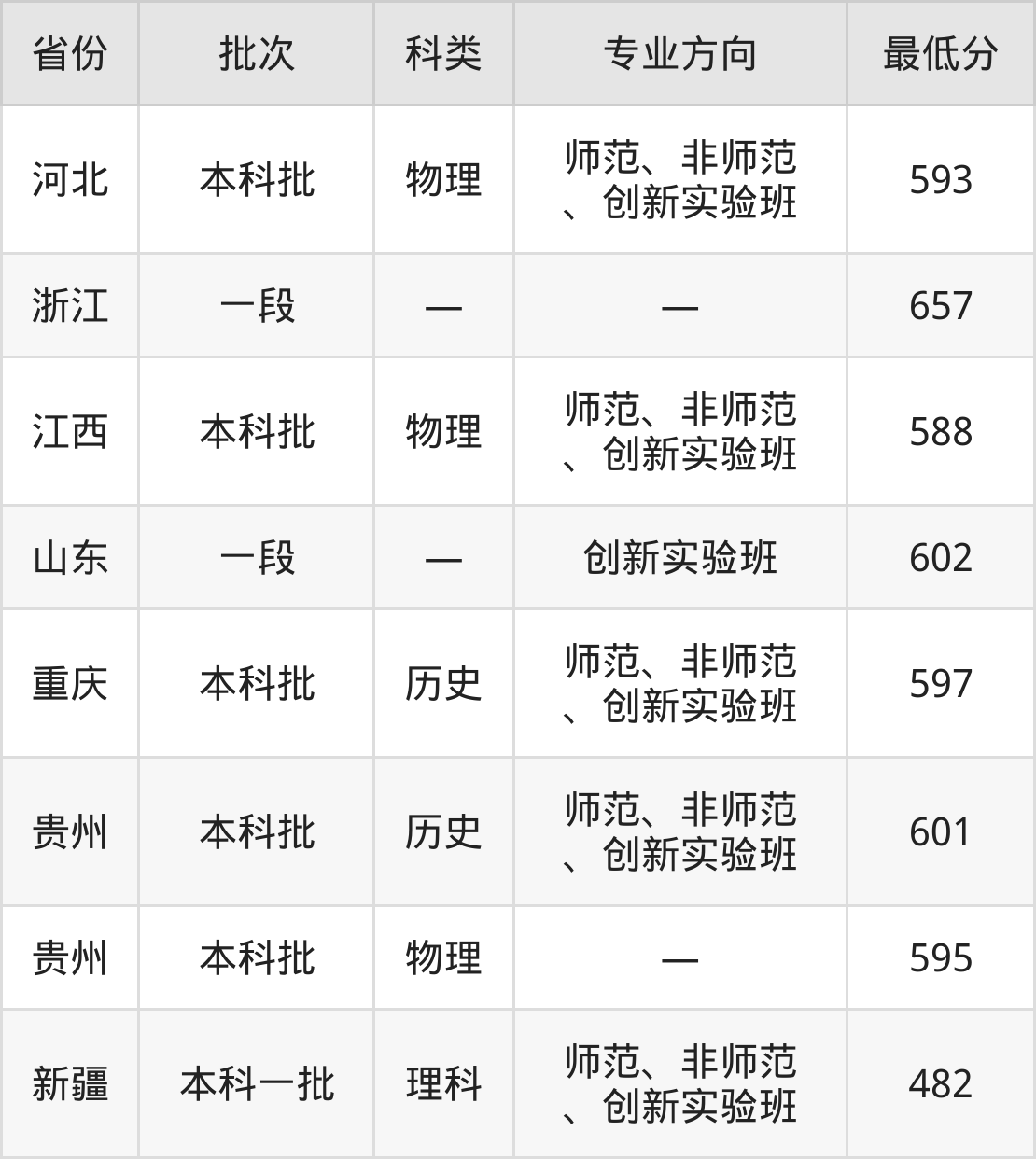 南京师范大学应用心理学专业在全国各省最低录取分数线为482分(新疆理科),除此之外,在其余地区的最低分为浙江657分、江西物理类588分、山东602分、重庆历史类597分等,以上数据均为2024年数据,供2025年高考生参考。