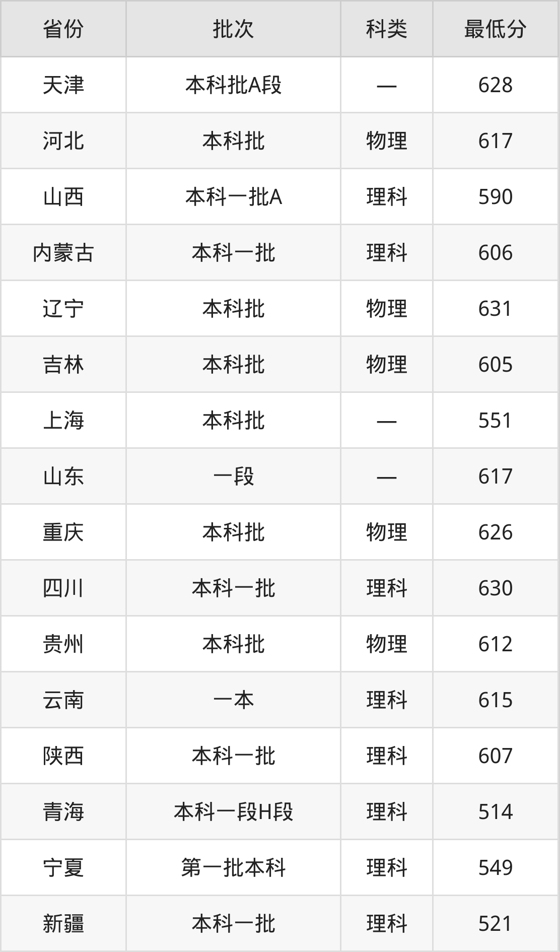 苏州大学机械工程专业录取分数线从514分到631分不等,在部分地区的最低分数线如下: