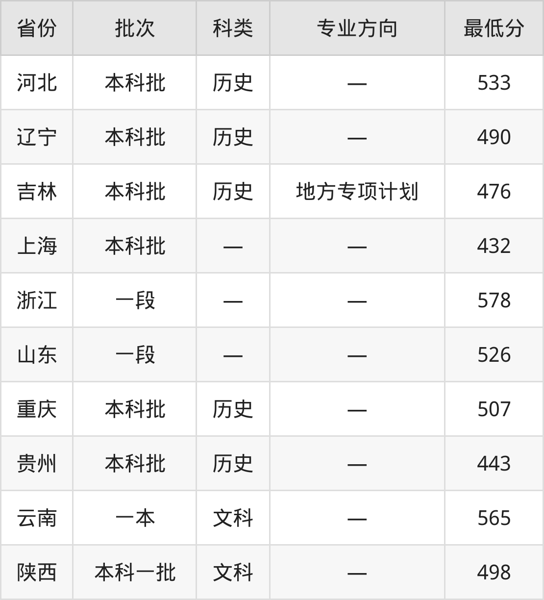 长春理工大学日语专业录取分数线从432分到578分不等,最低分数线如下: