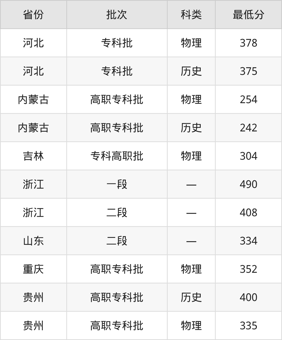 西安交通工程学院城市轨道交通运营管理专业在全国各省最低录取分数线为242分(内蒙古历史类),除此之外,在其余地区的最低分为吉林物理类304分、浙江408分、山东334分、重庆物理类352分等,以上数据均为2025年数据,供2026年高考生参考。