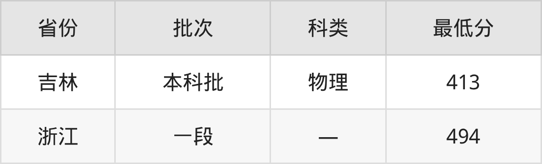 哈尔滨职业技术大学食品营养与健康专业在全国各省最低录取分数线为413分(吉林物理类),除此之外,在其余地区的最低分为浙江494分,以上数据均为2025年数据,供2026年高考生参考。