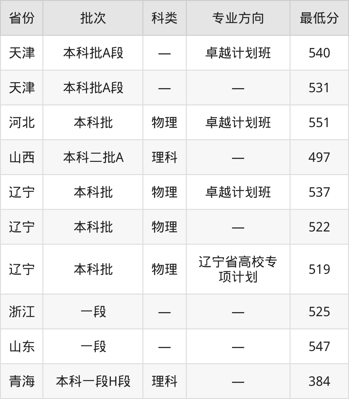 青海:理科最低384分