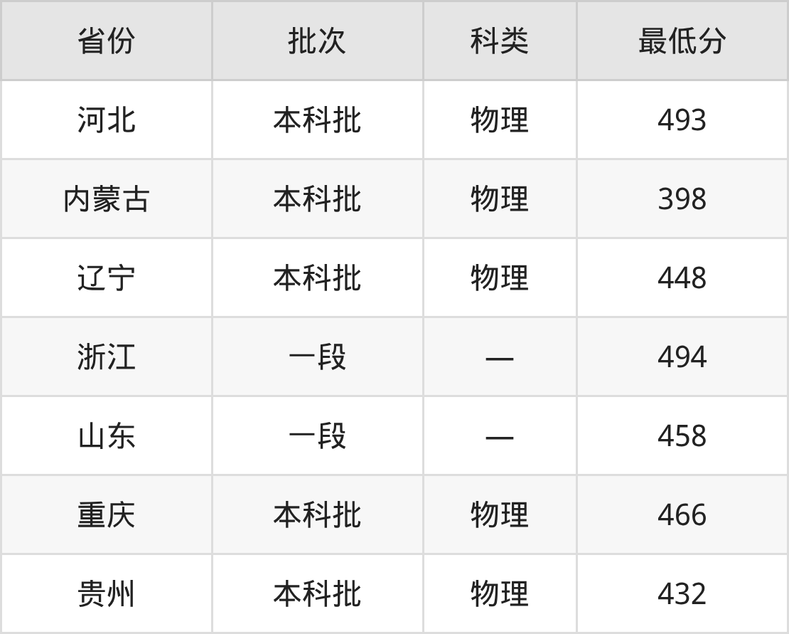 南昌理工学院智能制造工程专业在全国各省最低录取分数线为398分(内蒙古物理类),除此之外,在其余地区的最低分为山东458分、重庆物理类466分、贵州物理类432分、河北物理类493分等,以上数据均为2025年数据,供2026年高考生参考。