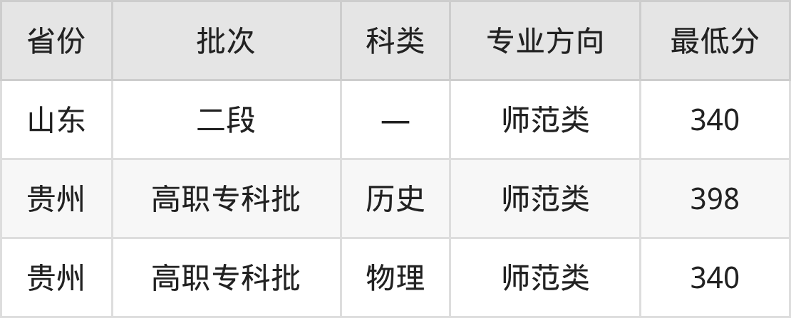 商丘职业技术学院小学英语教育专业在全国各省最低录取分数线为340分(山东),除此之外,在其余地区的最低分为贵州物理类340分,以上数据均为2025年数据,供2026年高考生参考。