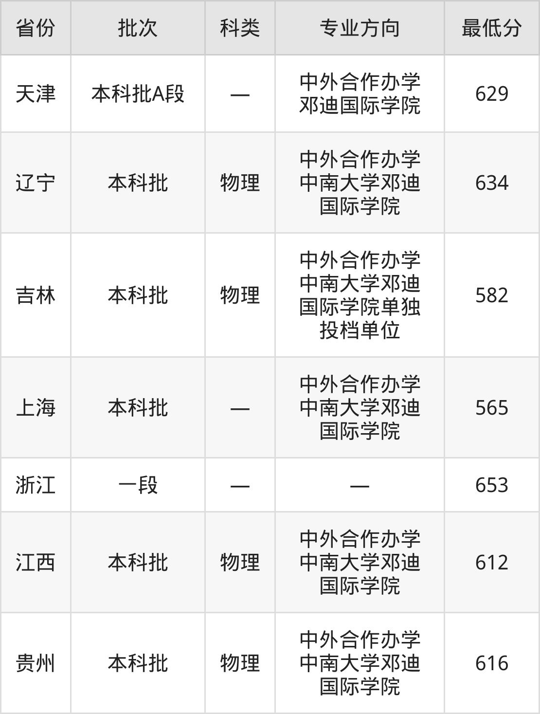 | 物理类 | 第208组( 中外合作) | 中外合作办学 中南大学邓迪 国际学院 | 21 |