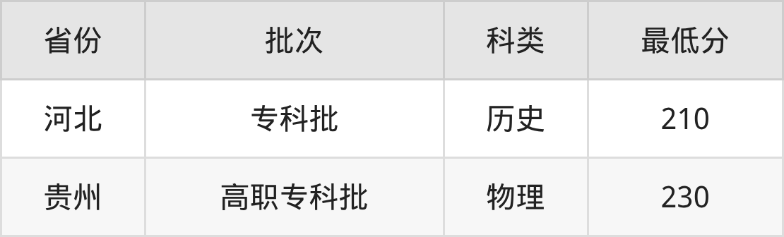 广东创新科技职业学院建筑消防技术专业在全国各省最低录取分数线为210分(河北历史类),除此之外,在其余地区的最低分为贵州物理类230分,以上数据均为2025年数据,供2026年高考生参考。