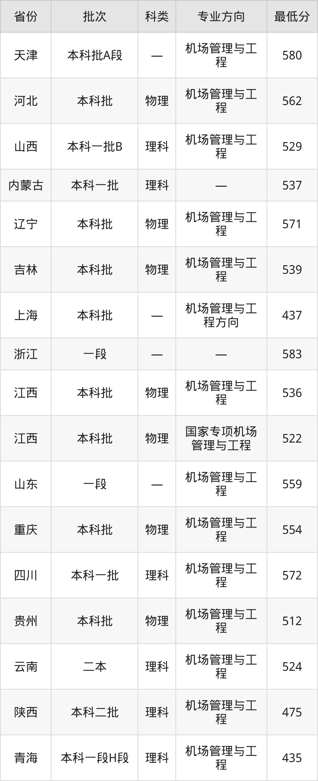 | 理科 | 机场管理与工 程 | 5 |