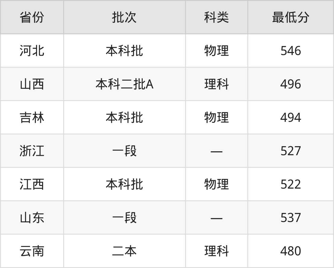 河北经贸大学数学与应用数学专业在全国各省最低录取分数线为480分(云南理科),除此之外,在其余地区的最低分为山西理科496分、吉林物理类494分、浙江527分、江西物理类522分等,以上数据均为2024年数据,供2025年高考生参考。