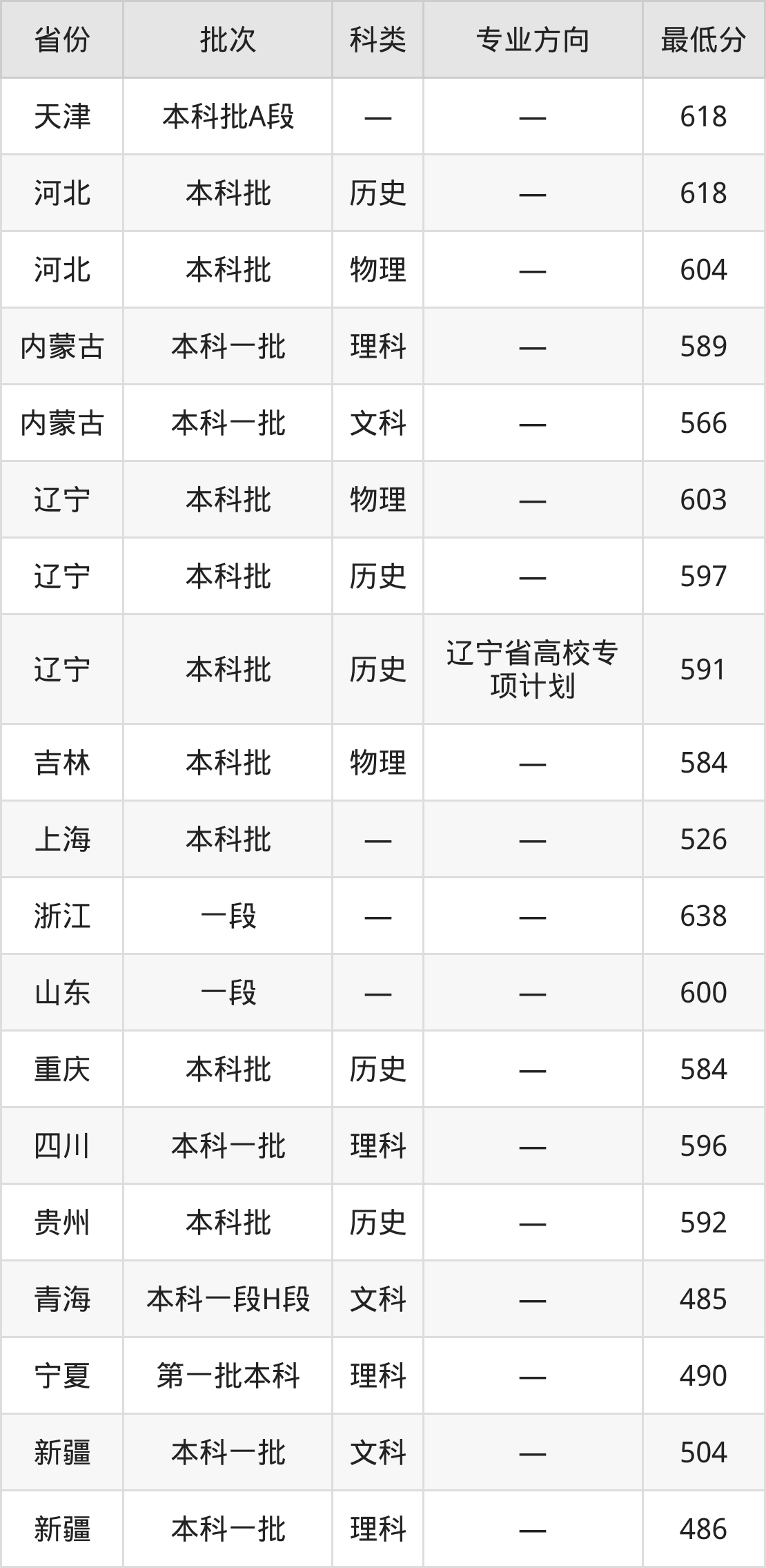 东北财经大学财政学类专业录取分数线从485分到638分不等,在部分地区的最低分数线如下: