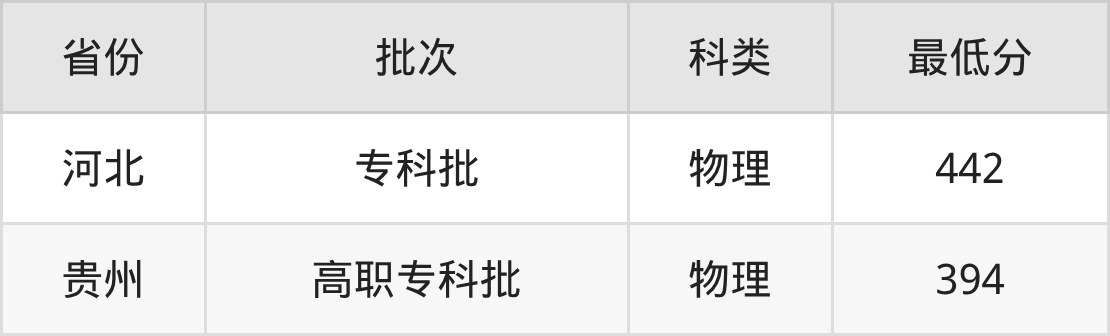 东莞职业技术学院虚拟现实技术应用专业在全国各省最低录取分数线为394分(贵州物理类),除此之外,在其余地区的最低分为河北物理类442分,以上数据均为2025年数据,供2026年高考生参考。
