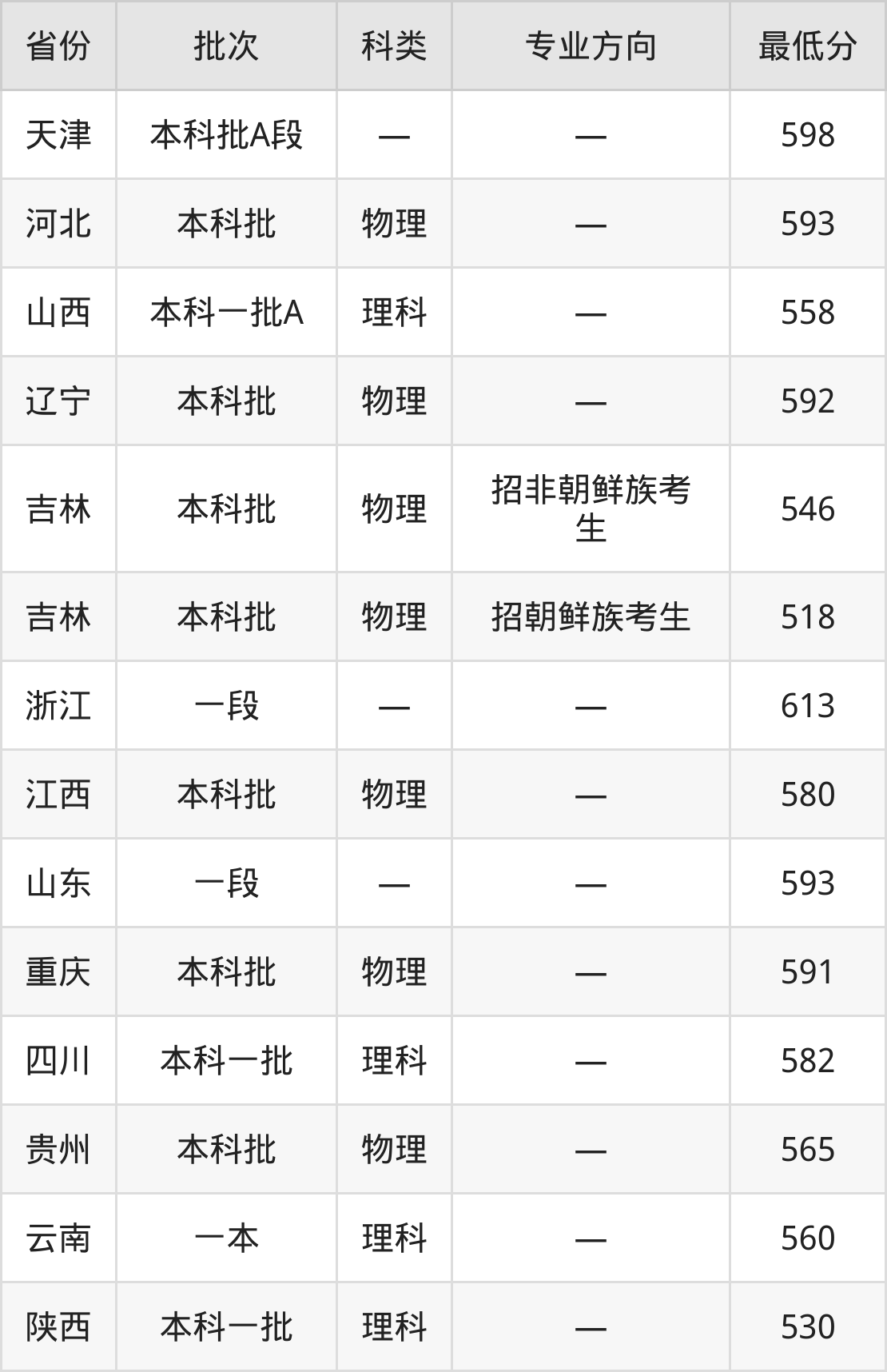 延边大学计算机科学与技术专业在全国各省录取分数线: