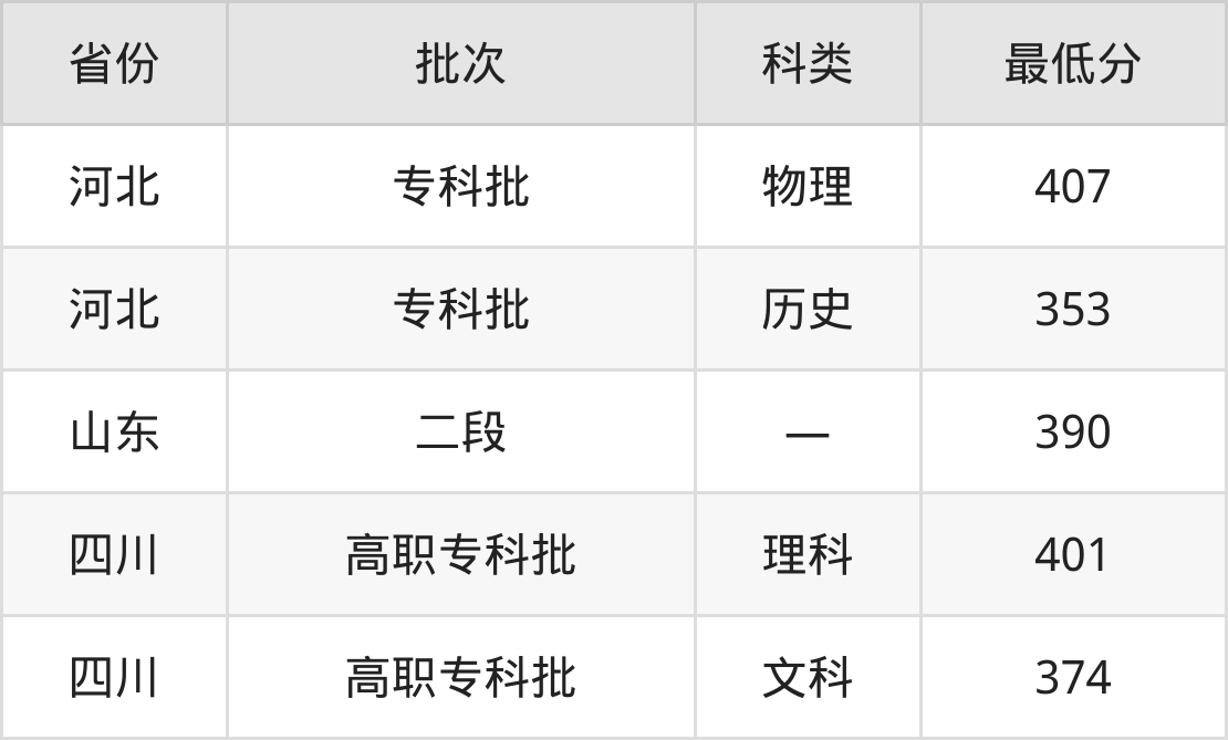 荆门职业学院应用电子技术专业录取分数线从353分到407分不等,最低分数线如下: