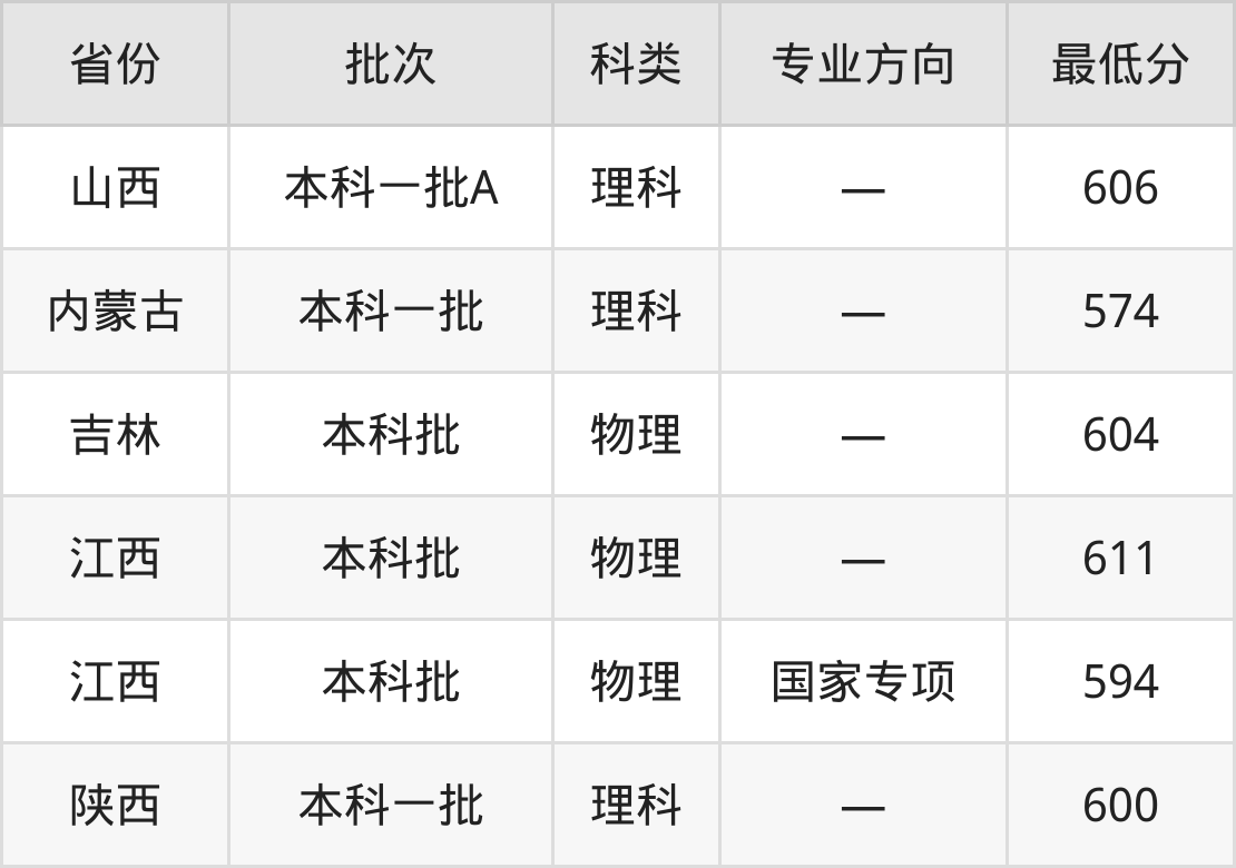 山西:理科最低606分