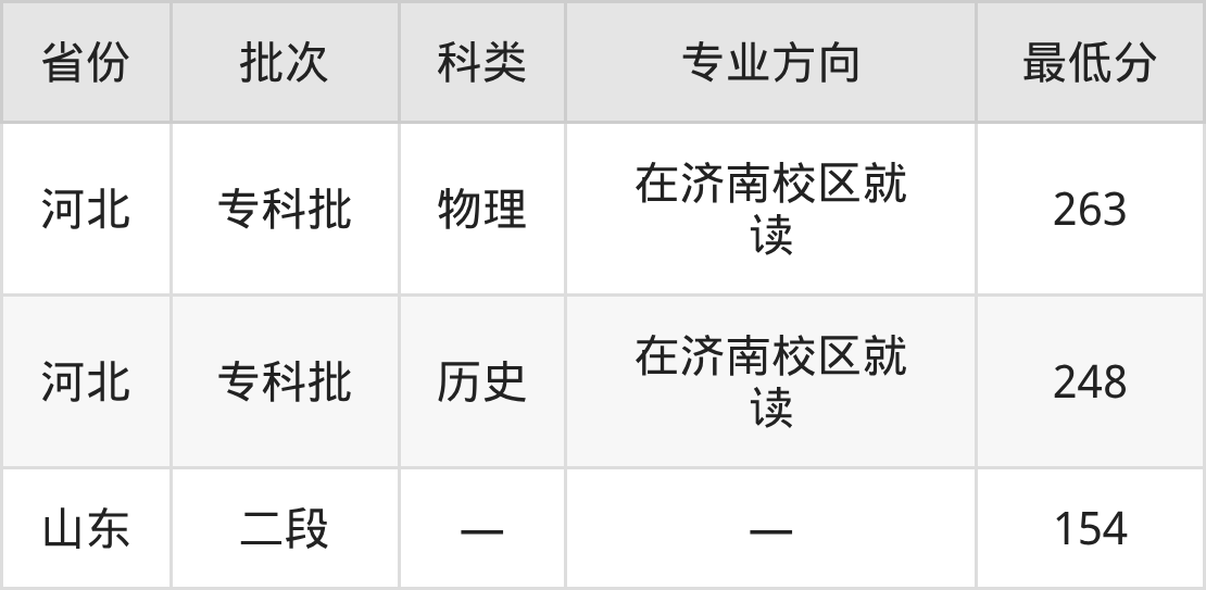 山东外事职业大学动漫制作技术专业录取分数线从154分到263分不等,最低分数线如下:
