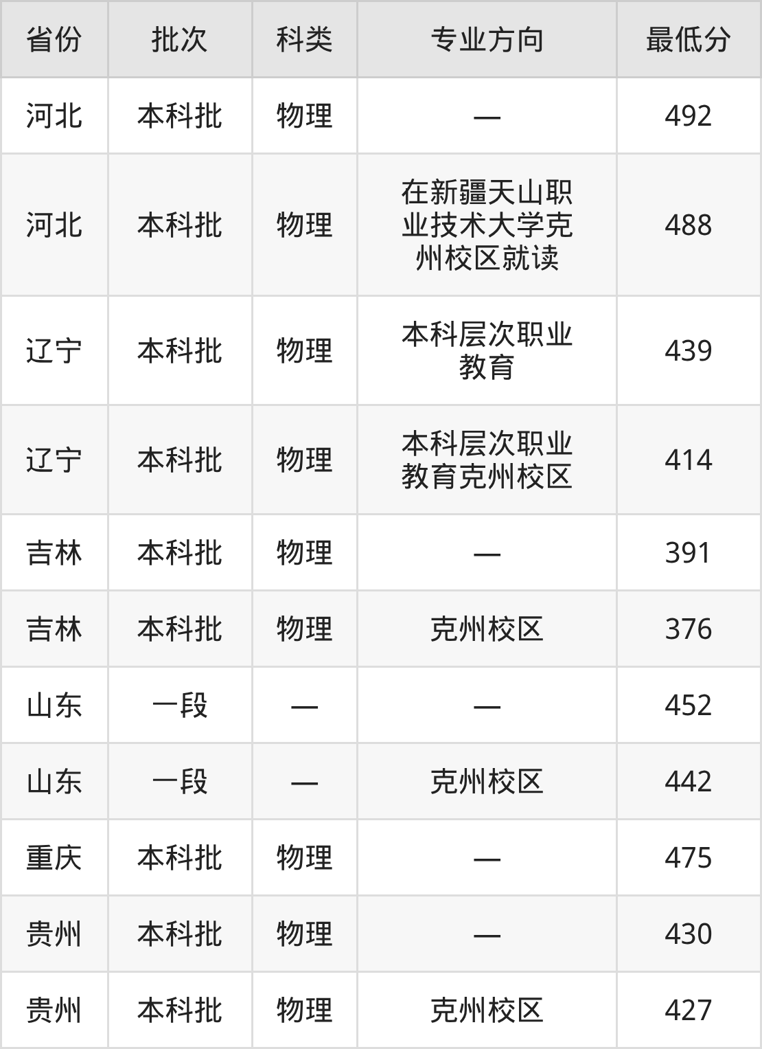 新疆天山职业技术大学无人机系统应用技术专业在全国各省录取分数线: