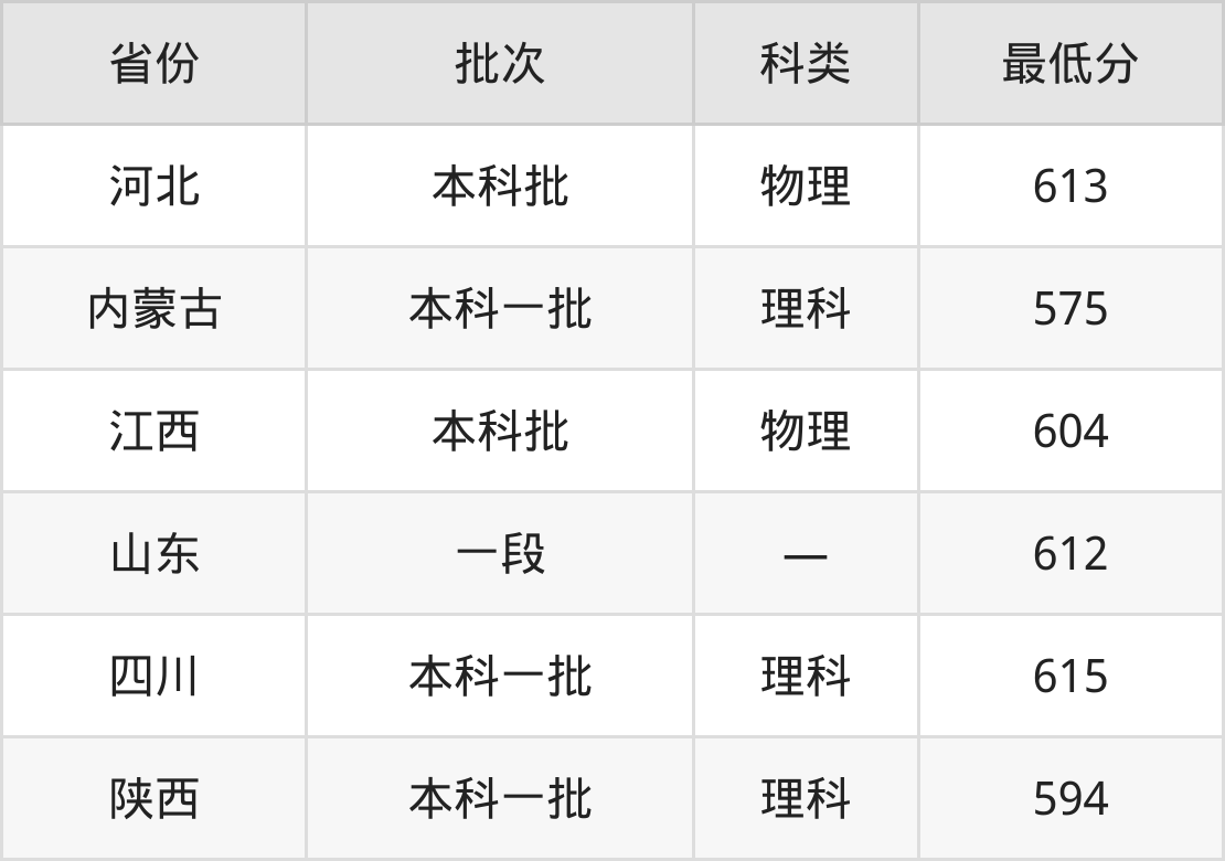 西北大学临床医学专业录取分数线从575分到615分不等,最低分数线如下: