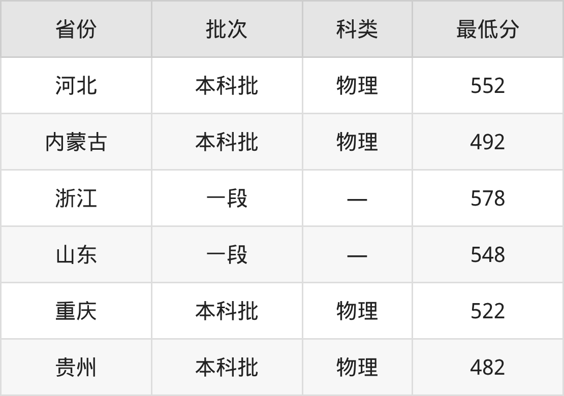 景德镇陶瓷大学文物保护技术专业在全国各省最低录取分数线为482分(贵州物理类),除此之外,在其余地区的最低分为河北物理类552分、内蒙古物理类492分、浙江578分、山东548分等,以上数据均为2025年数据,供2026年高考生参考。