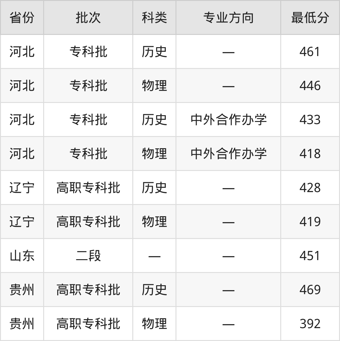 沧州医学高等专科学校医学检验技术专业在全国各省最低录取分数线为392分(贵州物理类),除此之外,在其余地区的最低分为河北物理类418分、辽宁物理类419分、山东451分,以上数据均为2025年数据,供2026年高考生参考。