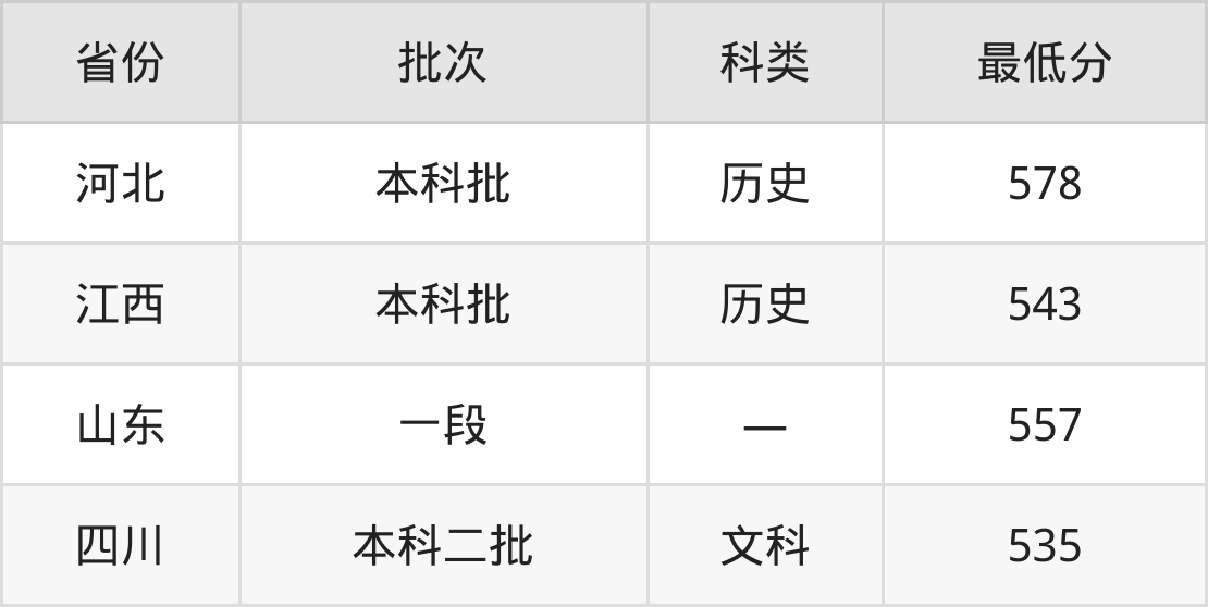 郑州轻工业大学法学专业在全国各省最低录取分数线为535分(四川文科),除此之外,在其余地区的最低分为河北历史类578分、江西历史类543分、山东557分,以上数据均为2024年数据,供2025年高考生参考。