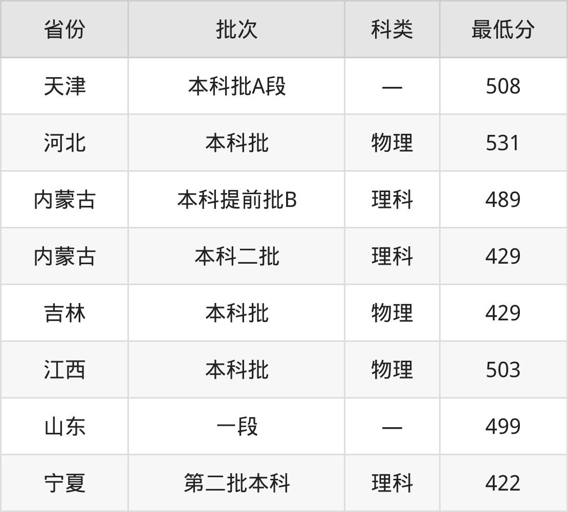 内蒙古科技大学应用统计学专业在全国各省最低录取分数线为422分(宁夏理科),除此之外,在其余地区的最低分为天津508分、河北物理类531分、内蒙古理科429分、吉林物理类429分等,以上数据均为2024年数据,供2025年高考生参考。