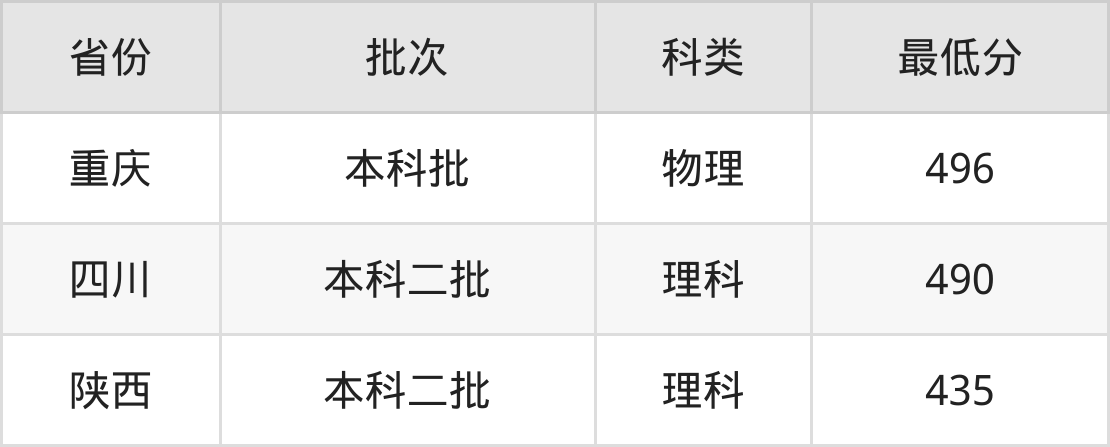 四川大学锦江学院电气工程及其自动化专业录取分数线从435分到496分不等,最低分数线如下: