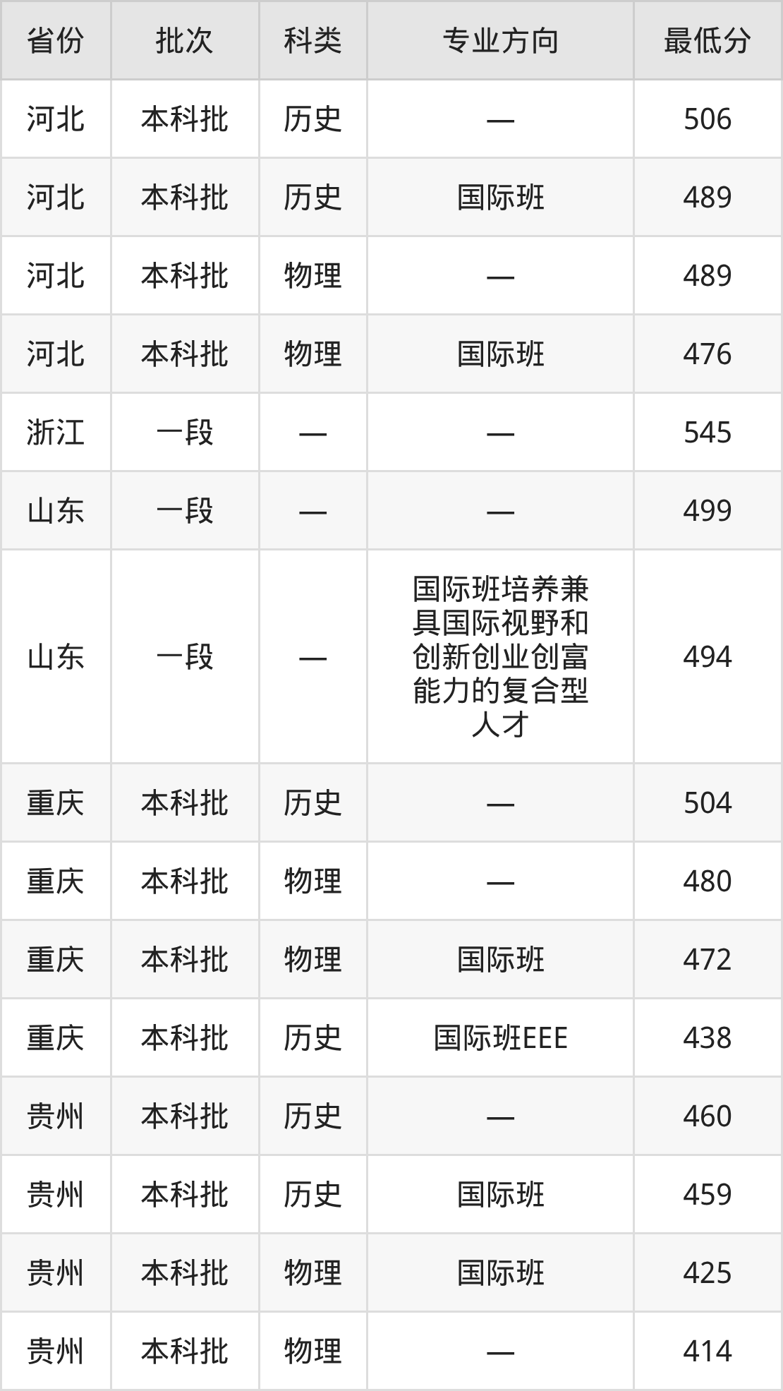 温州商学院会计学专业在全国各省最低录取分数线为414分(贵州物理类),除此之外,在其余地区的最低分为河北物理类476分、浙江545分、山东494分、重庆历史类438分等,以上数据均为2025年数据,供2026年高考生参考。