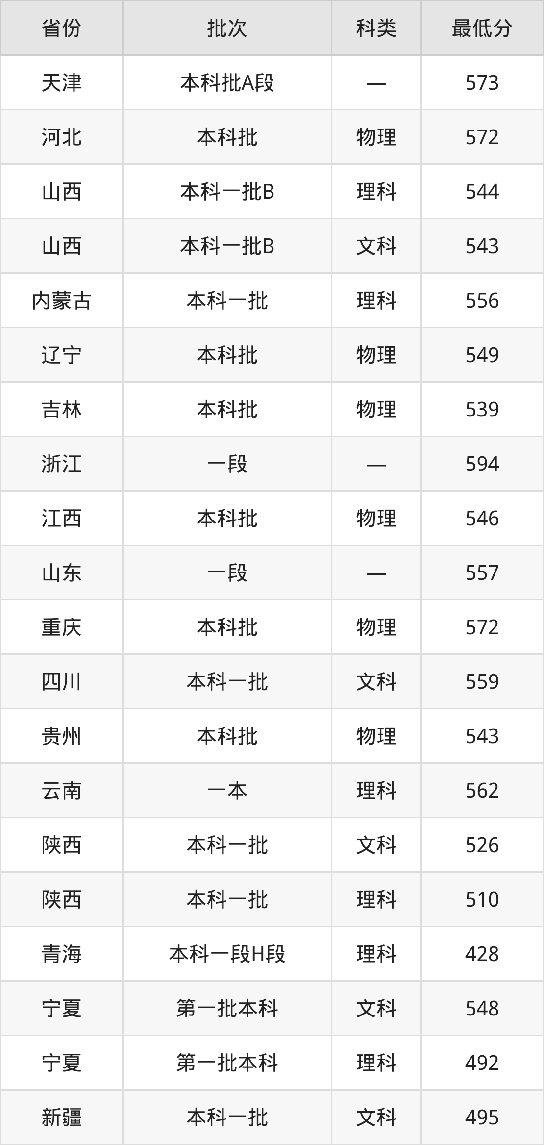 陕西中医药大学中医学专业录取分数线从428分到594分不等,在部分地区的最低分数线如下: