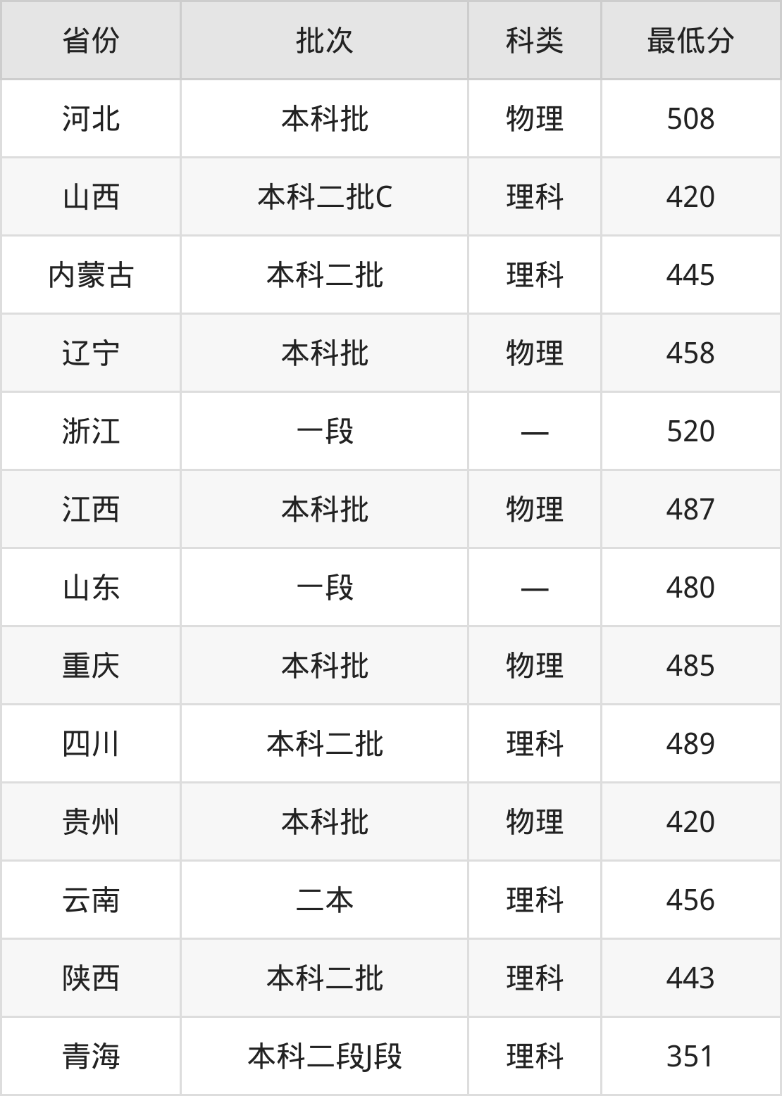 南京邮电大学通达学院电气工程及其自动化专业录取分数线从351分到520分不等,在部分地区的最低分数线如下: