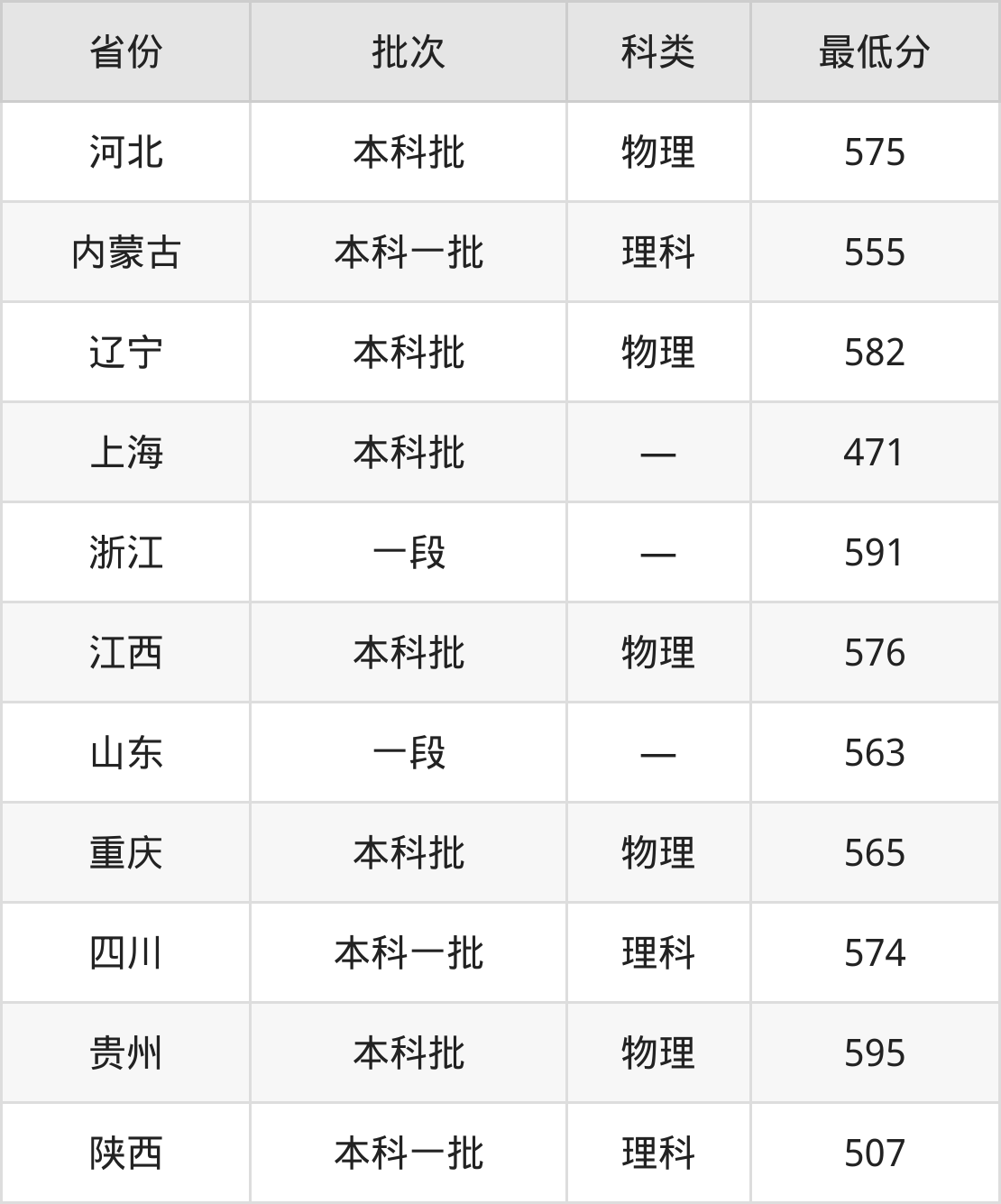 内蒙古:理科最低555分