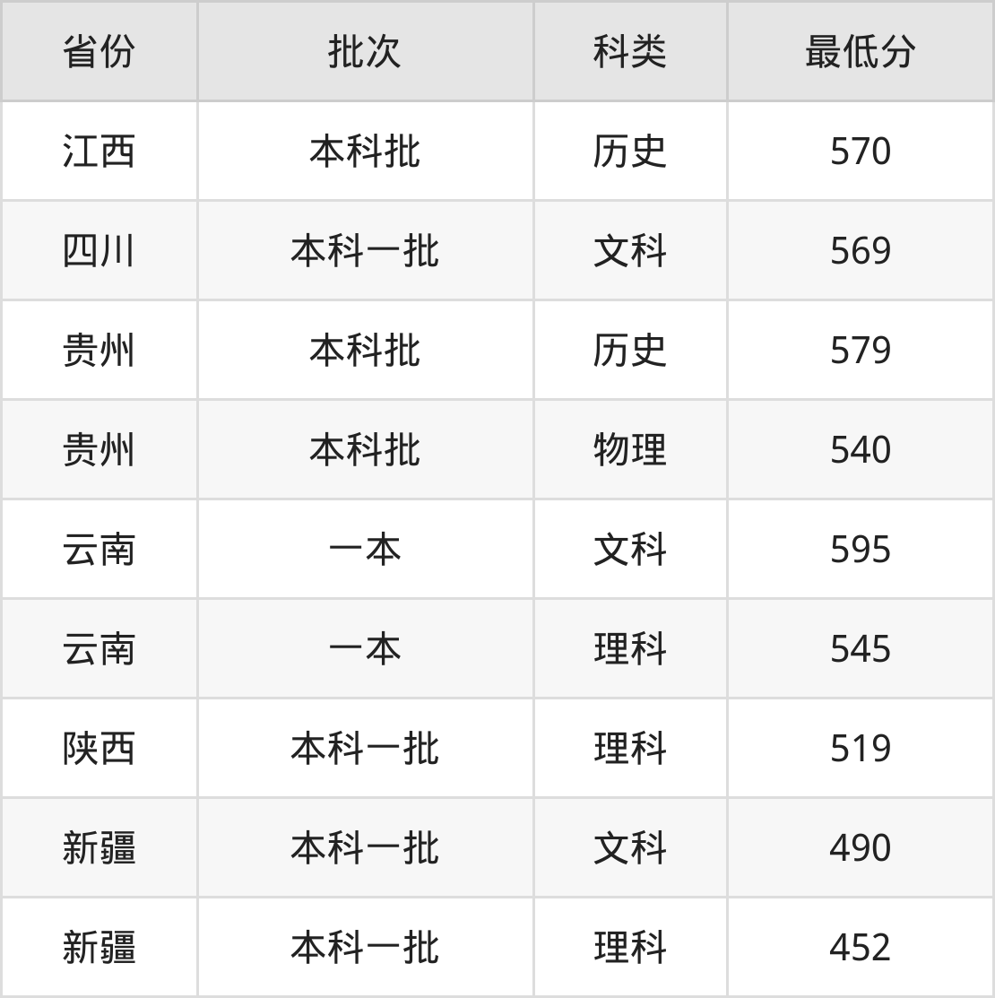 新疆大学马克思主义理论专业在全国各省最低录取分数线为452分(新疆理科),除此之外,在其余地区的最低分为云南理科545分、陕西理科519分、江西历史类570分、四川文科569分等,以上数据均为2024年数据,供2025年高考生参考。