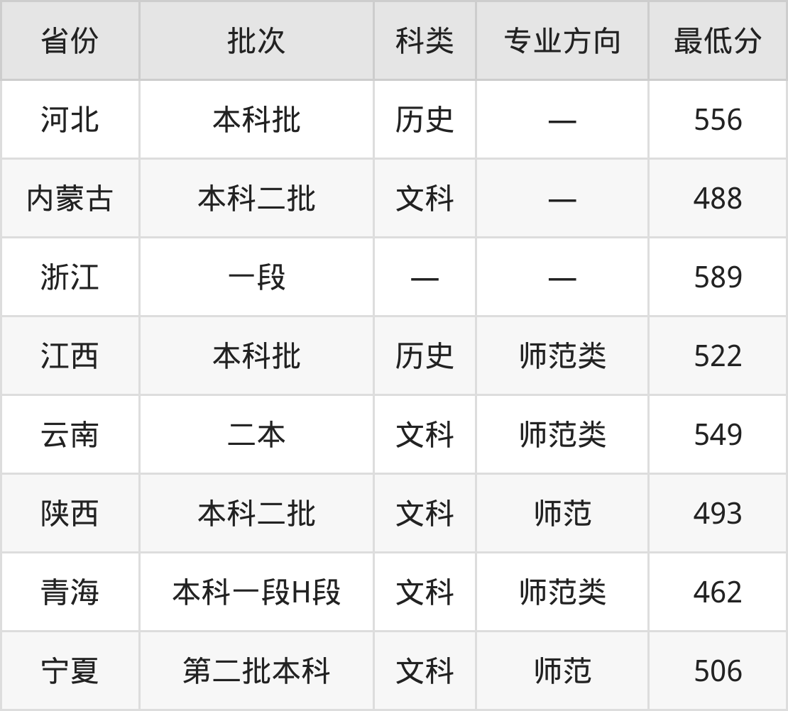 西安文理学院汉语言文学专业在全国各省最低录取分数线为462分(青海文科),除此之外,在其余地区的最低分为河北历史类556分、内蒙古文科488分、浙江589分、江西历史类522分等,以上数据均为2024年数据,供2025年高考生参考。