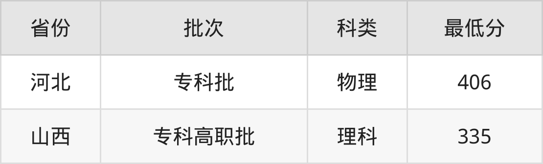内蒙古电子信息职业技术学院移动应用开发专业录取分数线从335分到406分不等,最低分数线如下: