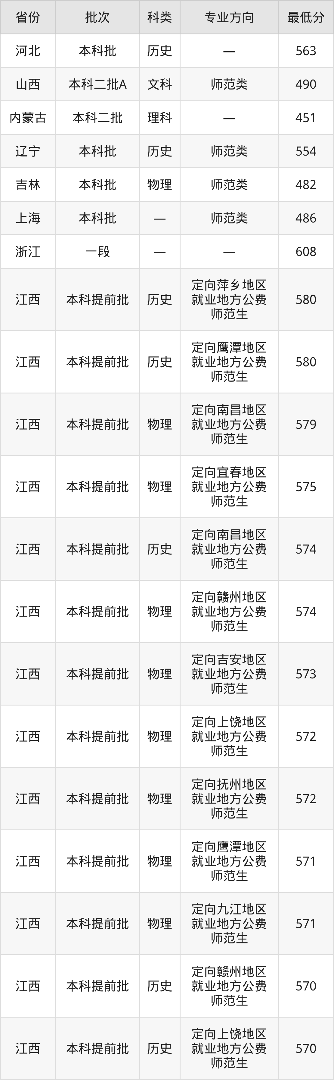 | 物理类 | 第505组 | 定向南昌地区 就业地方公费 师范生 | 1 |