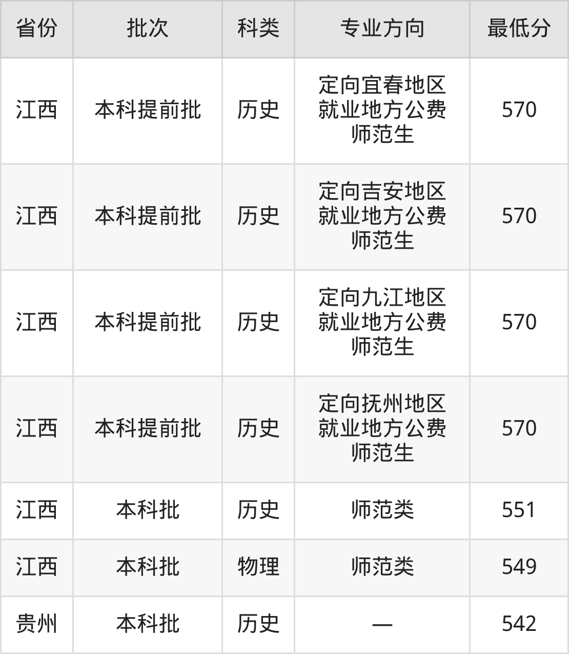 | 历史类 | 第104组 | 定向赣州地区 就业地方公费 师范生 | 5 |
