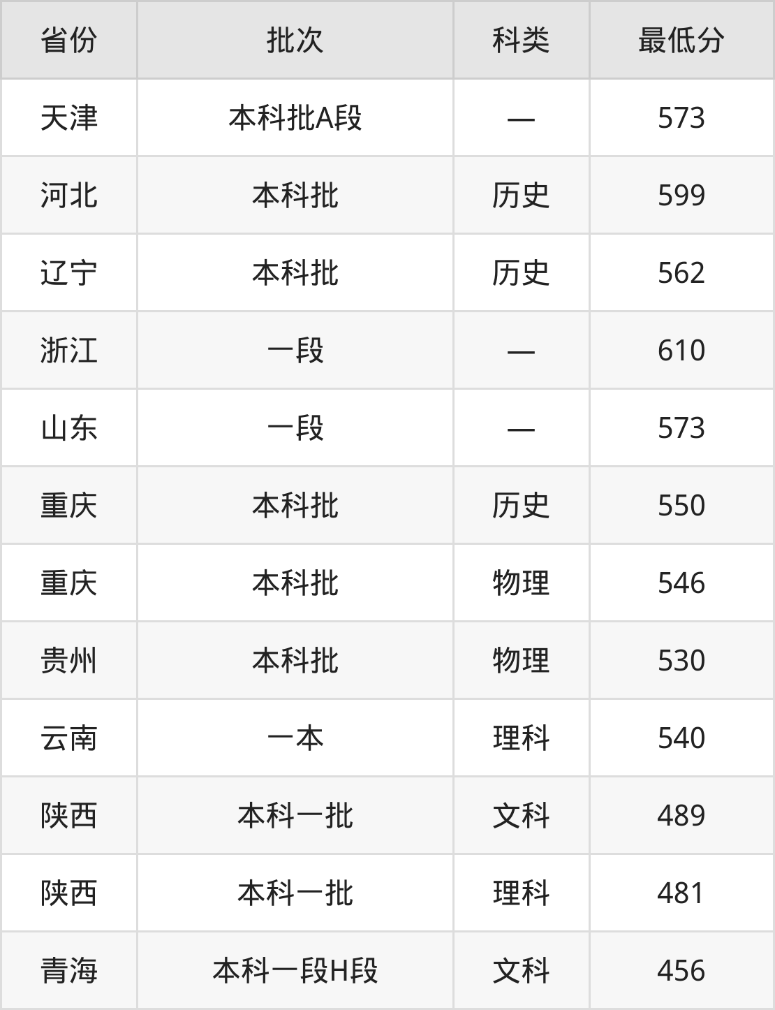 西安外国语大学国际经济与贸易专业在全国各省最低录取分数线为456分(青海文科),除此之外,在其余地区的最低分为辽宁历史类562分、山东573分、河北历史类599分、浙江610分等,以上数据均为2024年数据,供2025年高考生参考。