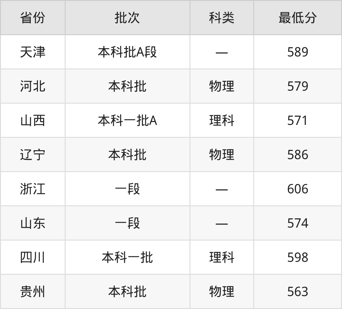 江苏大学农业机械化及其自动化专业录取分数线从563分到606分不等,最低分数线如下: