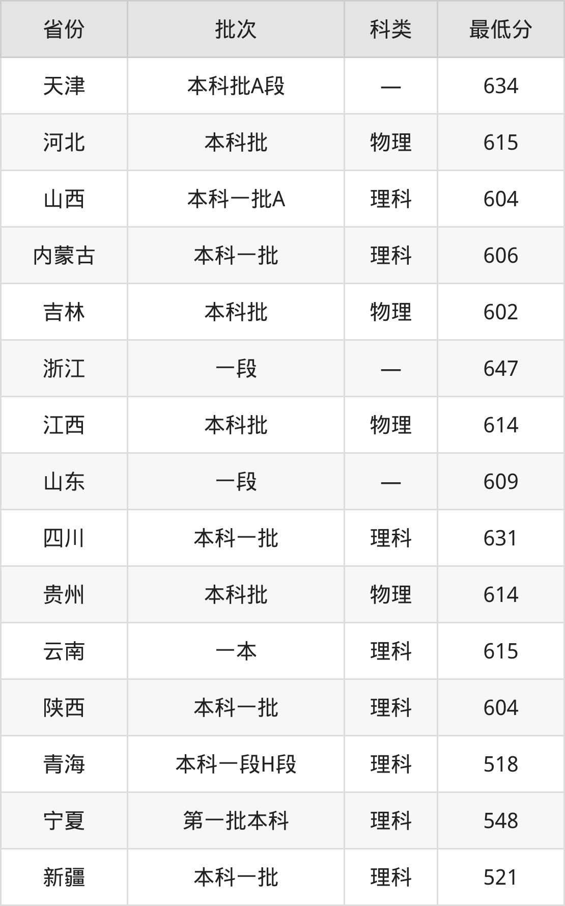 中国海洋大学大气科学专业录取分数线从518分到647分不等,在部分地区的最低分数线如下: