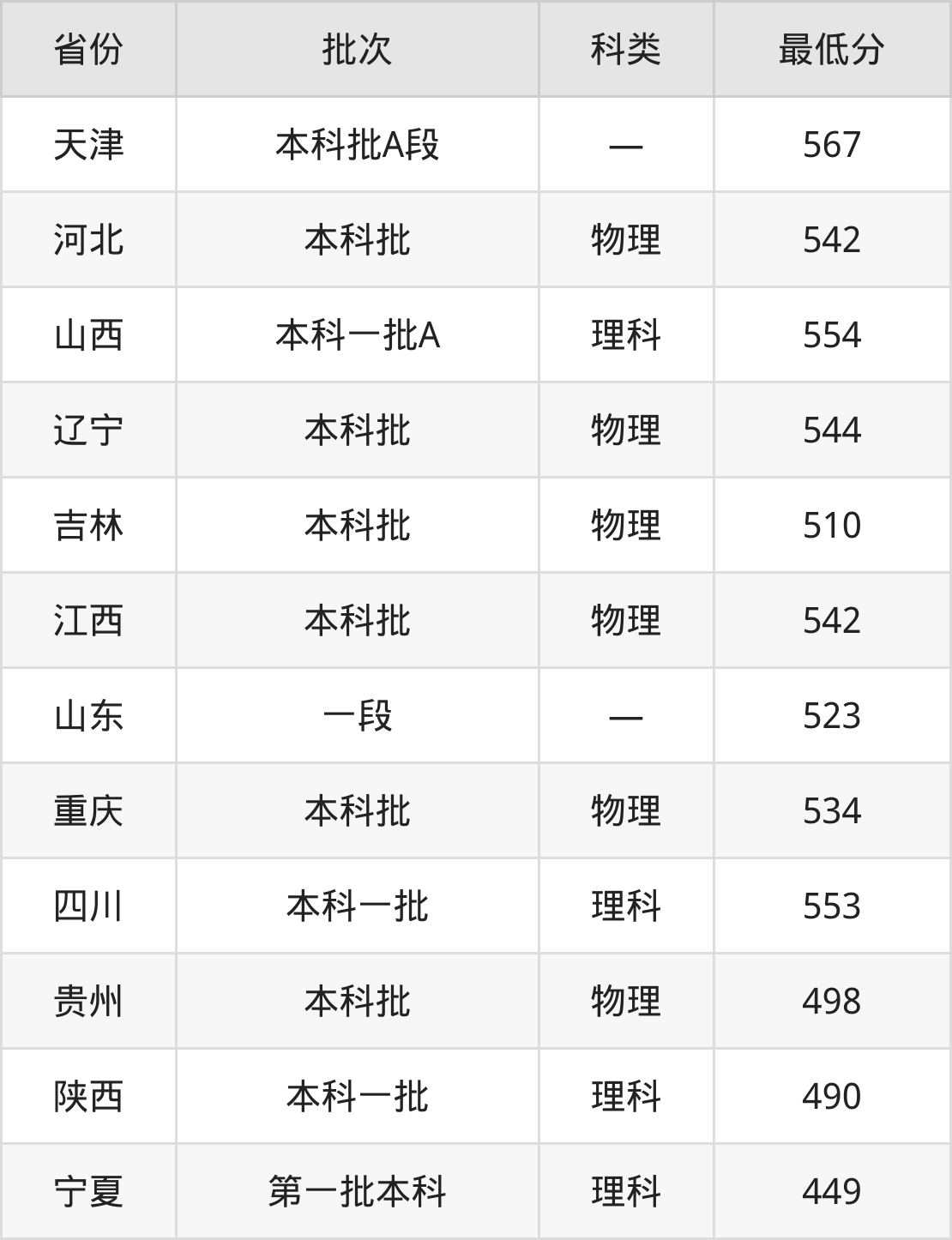 东北石油大学应用物理学专业录取分数线从449分到567分不等,在部分地区的最低分数线如下: